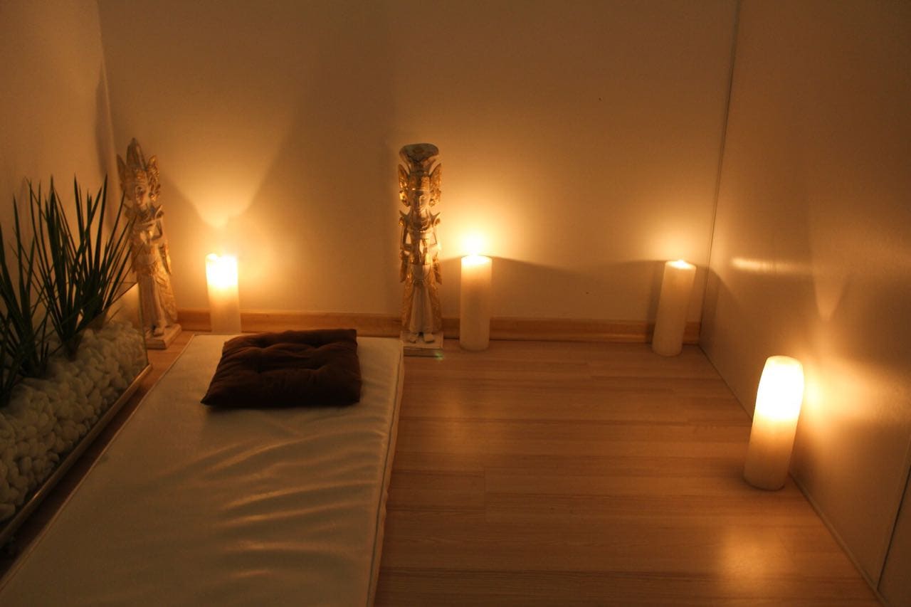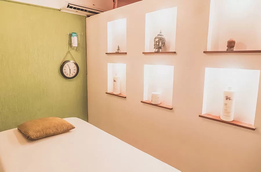 Decoração Aconchegante: Ambiente preparado para todas as massagens, respeitando higiene, limpeza, iluminação, temperatura e privacidade.